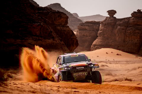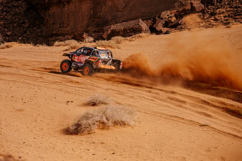 Una etapa de 736 kilómetros (421 cronometrados) con inicio y final en Al Ula, ha servido para que Isidre Esteve empiece a dejar atrás la pesadilla de la jornada anterior. Tras la reunión mantenida con la FIA, el piloto catalán, junto a otros competidores afectados, logró un cambio en la normativa: la ampliación del margen del 110% al 117% para determinar el orden de salida, un sistema ahora un poco más justo que evita que pilotos rápidos queden atrapados en el polvo de coches de categorías inferiores.